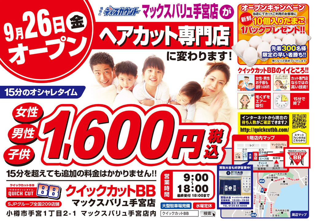 【所在地】小樽市手宮1丁目2-1 マックスバリュ手宮店1階